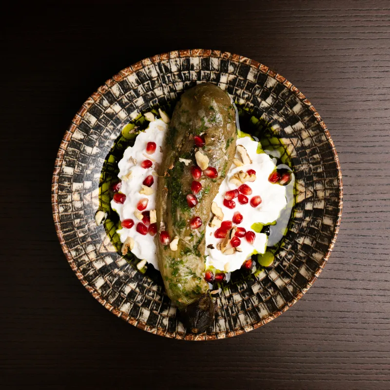 Vînătă,rodie,sos narsharab,stracciatella – 300g