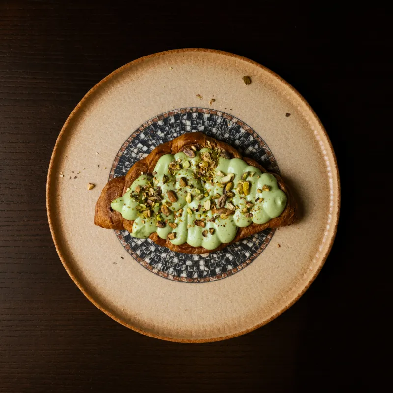 Croissant presat la grătar cu cremă de fistic si nuci – 200g